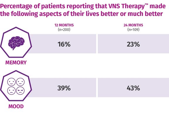 One-third of patients were considered "much improved" or "very much improved" following 12 months of adjunctive VNS TherapyTM (n=78), with sustained and improved scores continuing up to 24 months.2